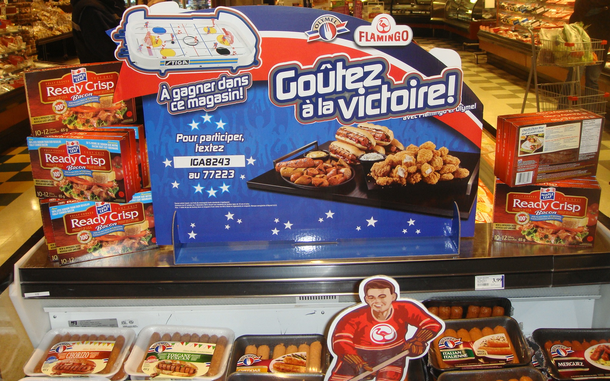 Right now Olymel has a sweepstakes running in most IGA grocery stores. The prize you ask? An awesome hockey table game!